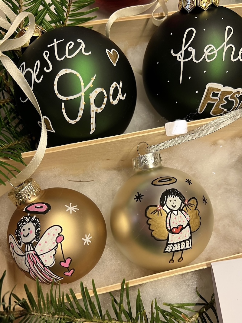 Kommt vorbei! Gerne personalisiere ich euch eure Christbaumkugeln.